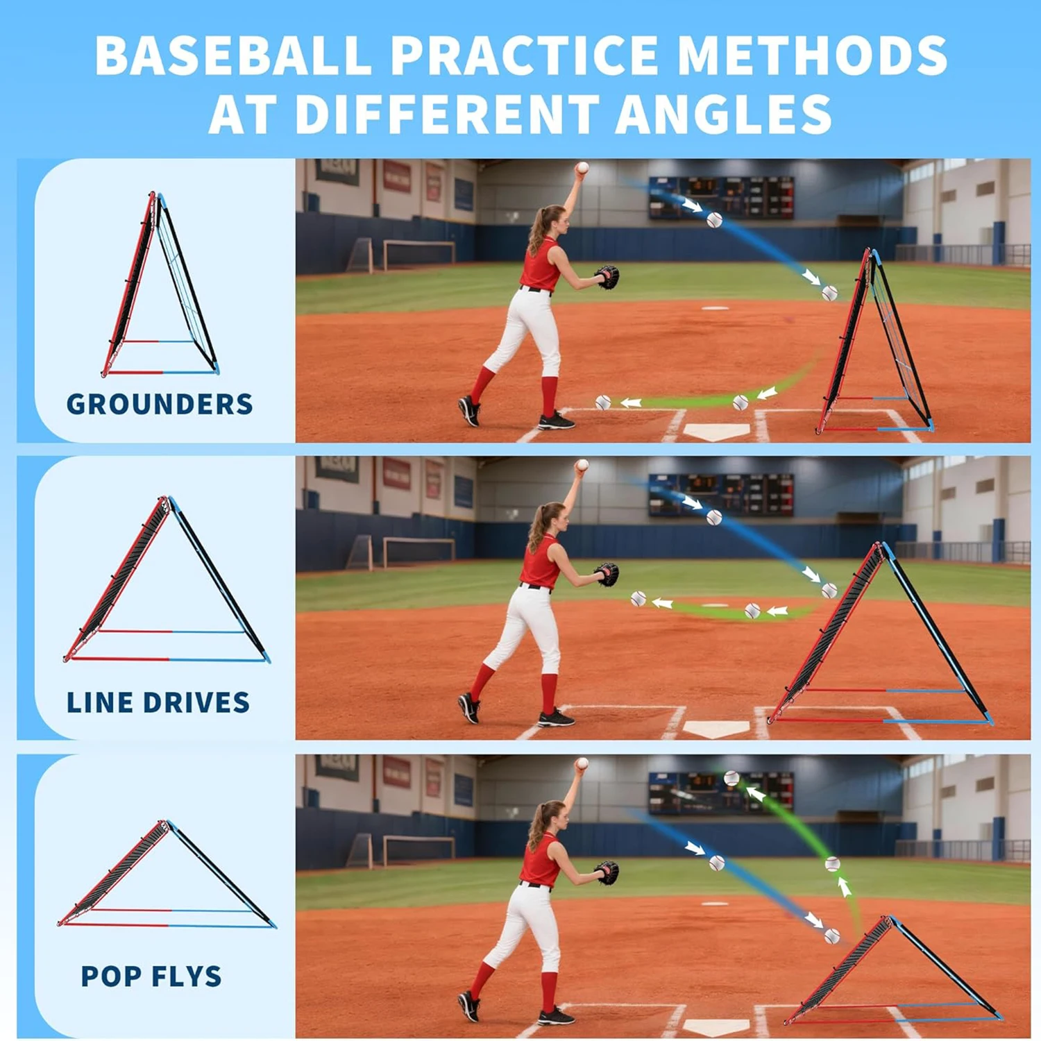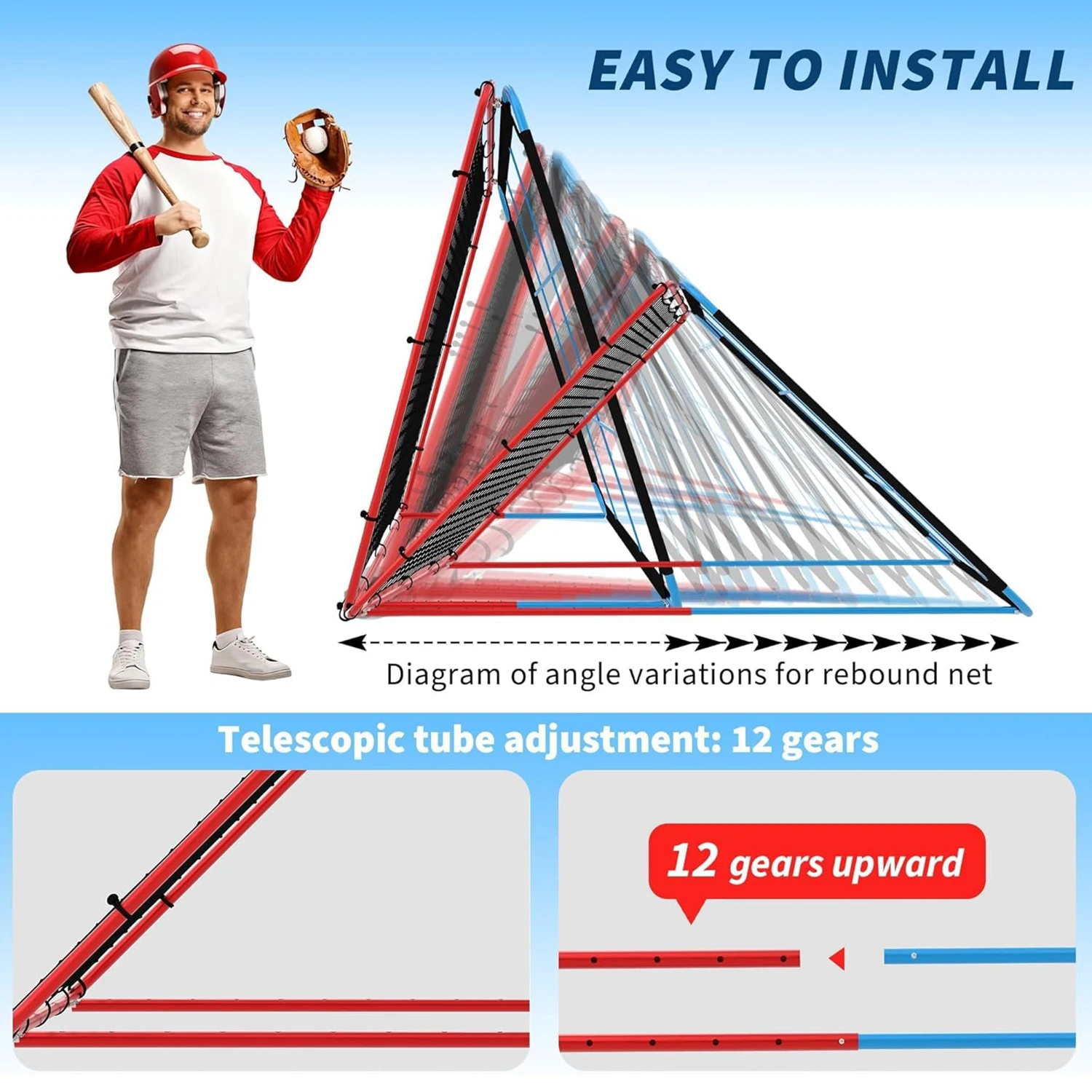 This adjustable baseball rebounder net is designed to improve pitching, throwing, and fielding skills through consistent ball return during practice. Featuring a 12-angle adjustment system and a 9-pocket target net, it helps players train accuracy, reaction time, and control in both baseball and softball drills. The durable frame and strong netting provide stability for repeated use, while the versatile design makes it suitable for solo training or team practice. Ideal for athletes of all skill levels, this training equipment supports effective skill development both indoors and outdoors.