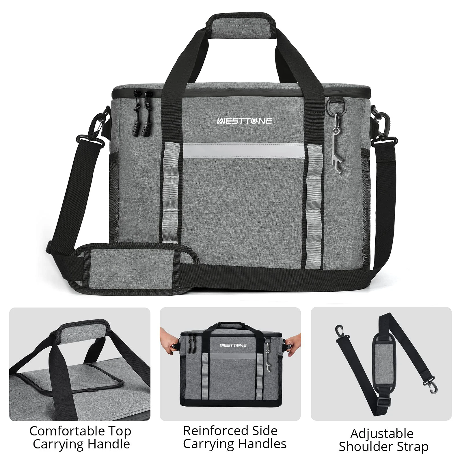 This 13-gallon portable cooler bag offers generous capacity, holding up to 75 cans, making it ideal for grocery shopping, camping, travel, and outdoor gatherings. Designed with high-performance insulation, it helps maintain cold temperatures for beverages, food, and perishables during transport. The durable exterior and reinforced handles provide reliable support for heavy loads, while the soft-sided design allows for easy storage when not in use. Lightweight yet spacious, this cooler bag is a practical and convenient solution for keeping items fresh on the go.