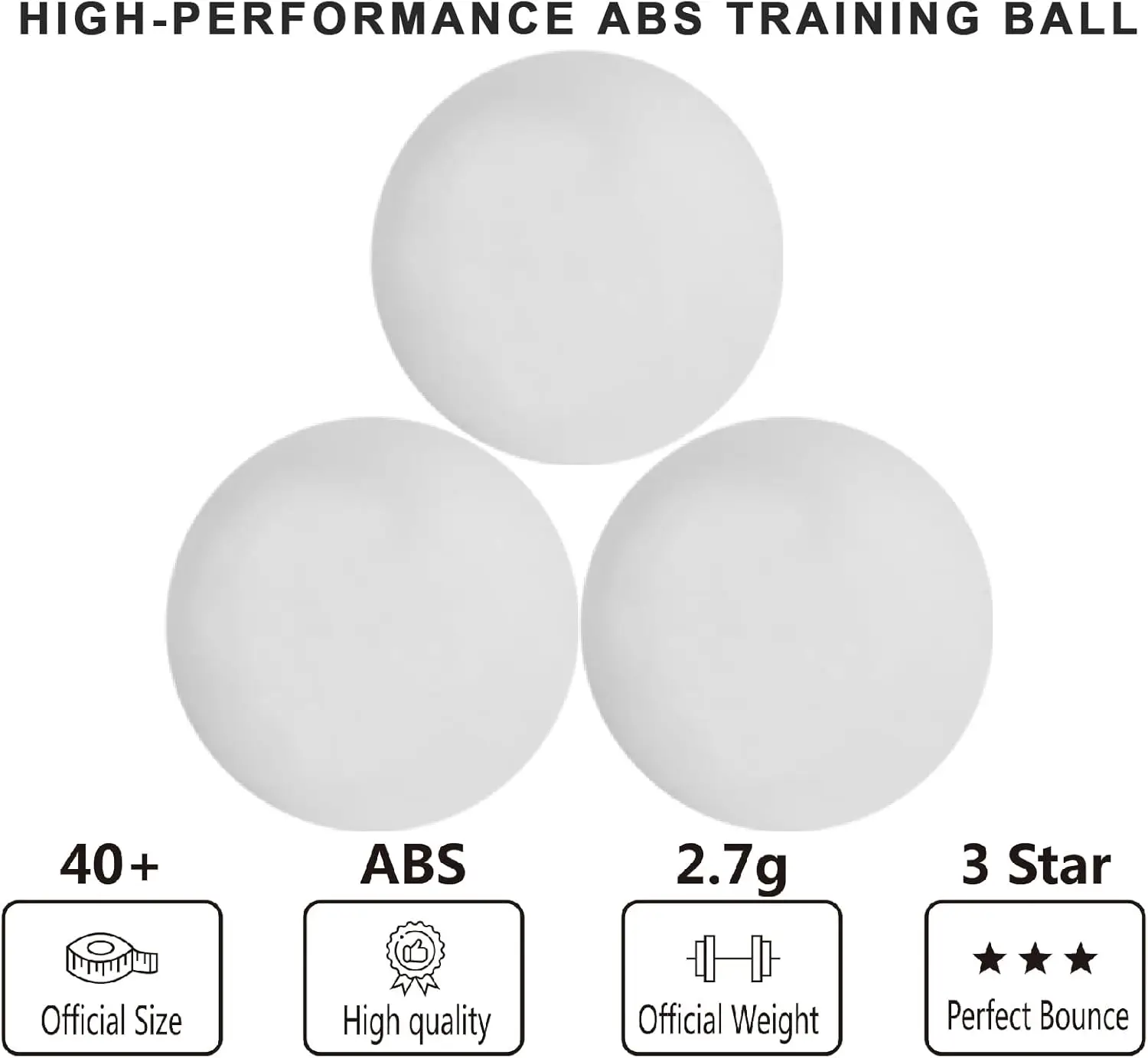These 3-star ping pong balls are crafted from high-performance ABS material to deliver consistent bounce, durability, and reliable flight during training sessions and competitive games. Designed to meet 40+ mm standards, they provide excellent control and responsiveness for players of all skill levels. Ideal for practice drills, recreational matches, or club play, these table tennis balls offer long-lasting performance and dependable quality for both indoor and competitive environments.