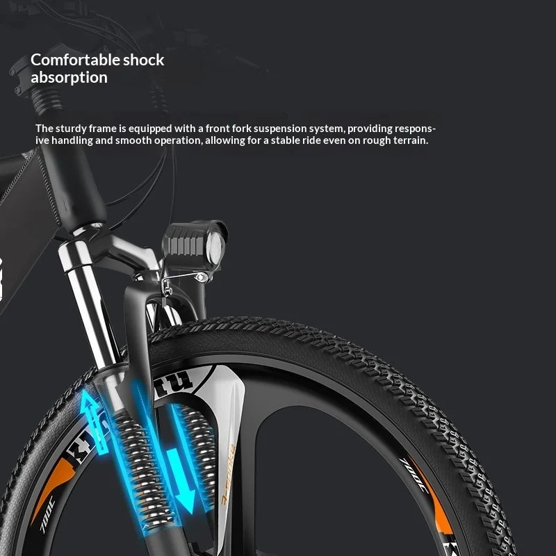 This 26-inch electric bicycle is designed for comfort, stability, and extended riding performance. Powered by a 400W motor, it provides smooth and efficient assistance for commuting and leisure rides. The large 48V 30Ah lithium battery delivers impressive range, making it ideal for longer trips without frequent charging. Featuring a dual suspension system, this e-bike significantly reduces impact from rough or uneven terrain, ensuring a more comfortable and controlled riding experience. Built for adult riders, it combines practicality, endurance, and comfort in one reliable electric bike.