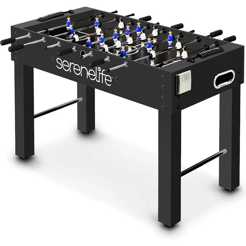 Bring competitive fun to your home with this 48-inch foosball table designed for indoor family entertainment. Built for smooth and fast-paced gameplay, it delivers an exciting arcade-style experience for players of all ages. The sturdy construction ensures reliable performance, while the included two balls make it ready for action. With convenient cup holders for added comfort, this table is a perfect addition to any game room or recreational space.