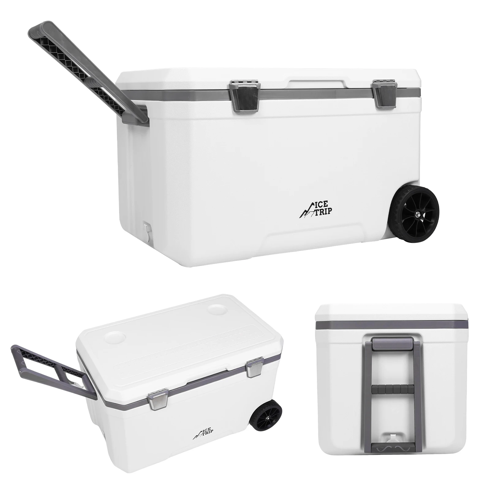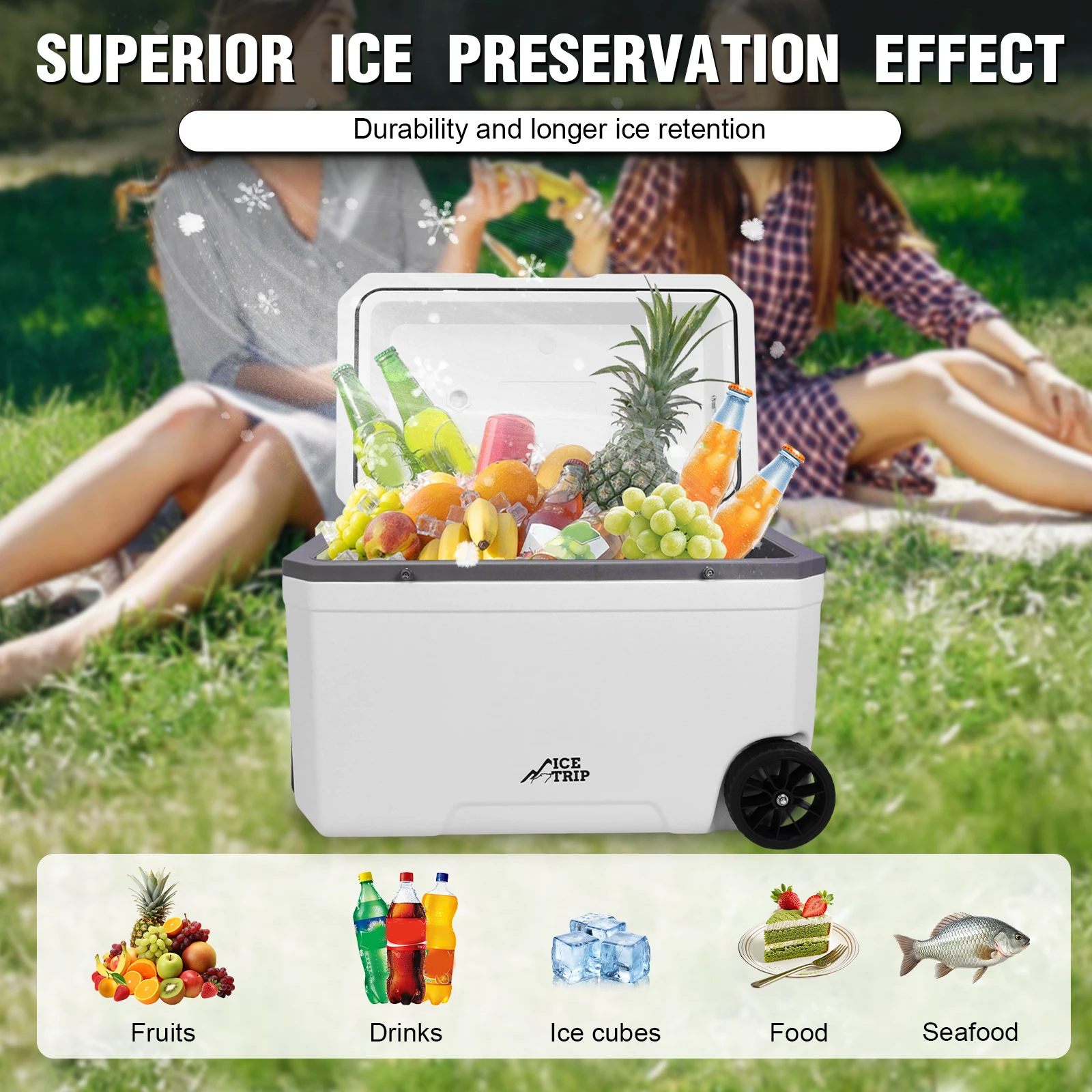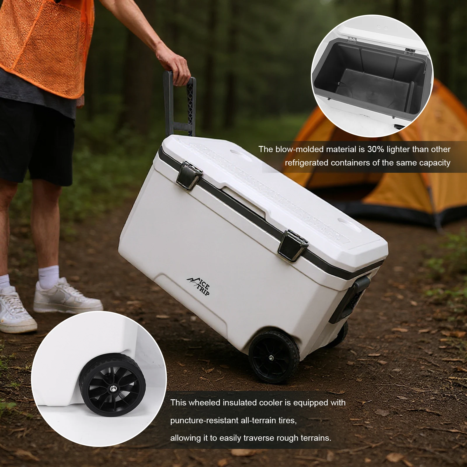 This 70L wheeled hard shell cooler is designed for maximum capacity, durability, and long-lasting insulation performance. Built with a sturdy exterior shell, it keeps drinks and food cold for extended periods, making it perfect for camping, beach trips, picnics, barbecues, and outdoor events. The large interior provides ample storage for beverages and ice, while the built-in cup holders add extra convenience. Equipped with durable wheels and an easy-pull handle, this rolling cooler ensures effortless transport wherever your outdoor adventures take you.