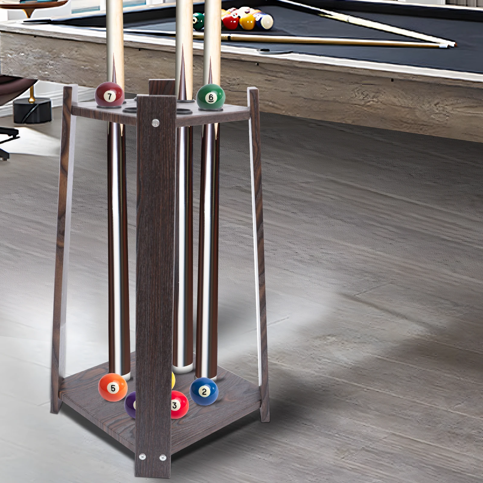 Organize your billiard space with this 8-hole floor cue rack designed to securely hold multiple pool sticks in one convenient stand. Built for stability and durability, it helps protect cues from damage while keeping them neatly stored and easily accessible. Ideal for home billiard rooms or recreational areas, this rack offers a practical storage solution without taking up excessive space. A perfect addition to any game room, it keeps equipment organized and ready for play.