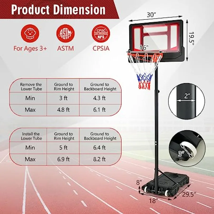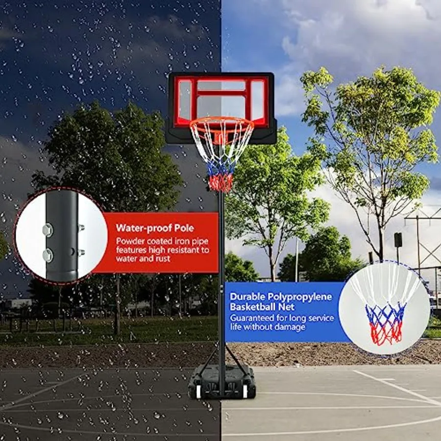 This portable basketball hoop system features an adjustable height range from 4.3 ft to 8.2 ft, making it ideal for kids, teens, and family play. Built for both indoor and outdoor use, it offers a durable and weather-resistant design that stands up to regular practice and recreational games. The integrated ball storage keeps equipment organized and easily accessible, while the stable base provides reliable support during play. Perfect for driveways, backyards, garages, or indoor courts, this adjustable basketball goal delivers versatile performance for players of all skill levels.