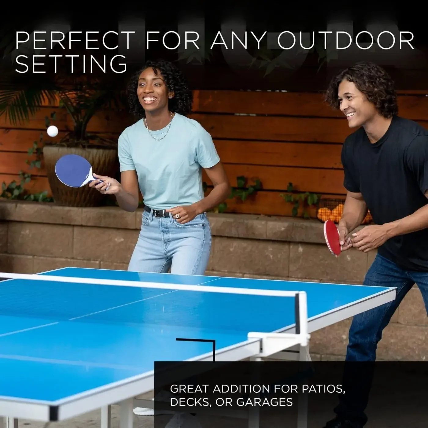 This professional outdoor table tennis table is built with a durable all-weather aluminum surface designed for both indoor and outdoor use. Waterproof and resistant to warping, it delivers consistent bounce and reliable performance in various conditions, making it ideal for backyards, patios, game rooms, schools, or clubs. The sturdy frame ensures stability during intense matches, while the included net and post set allows for quick setup. With an easy assembly design that takes approximately 10 minutes, this table offers convenience, durability, and professional-level play for players of all skill levels.