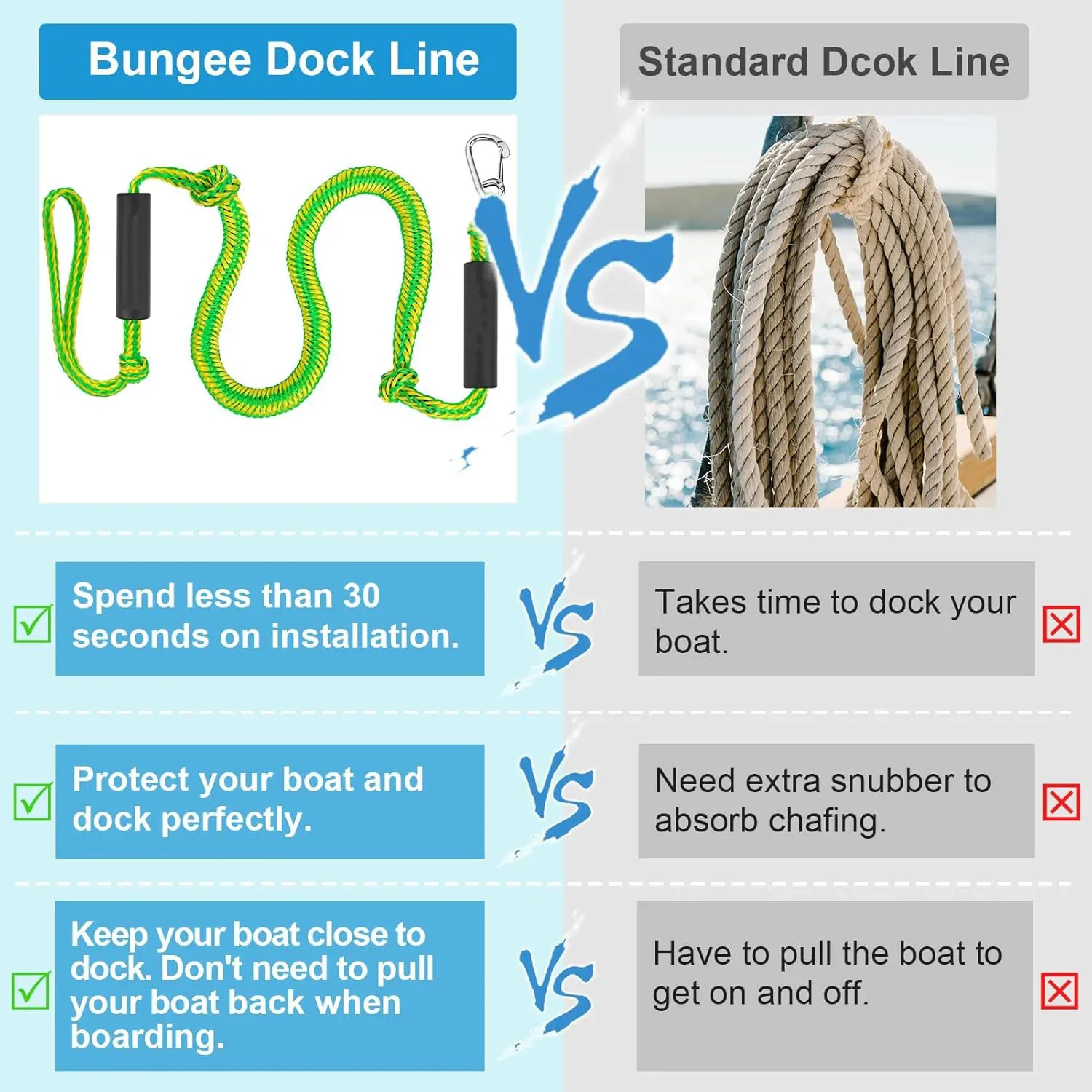 Secure your watercraft effortlessly with this boat bungee dock line, ideal for kayaks, canoes, jet skis, pontoons, and power boats. The flexible bungee design absorbs shocks and maintains tension, protecting your vessel from bumps and drift while moored. Durable and easy to use, these docking cords provide reliable performance in various water conditions. Lightweight and portable, they are essential accessories for safe and convenient boat docking and watercraft management.