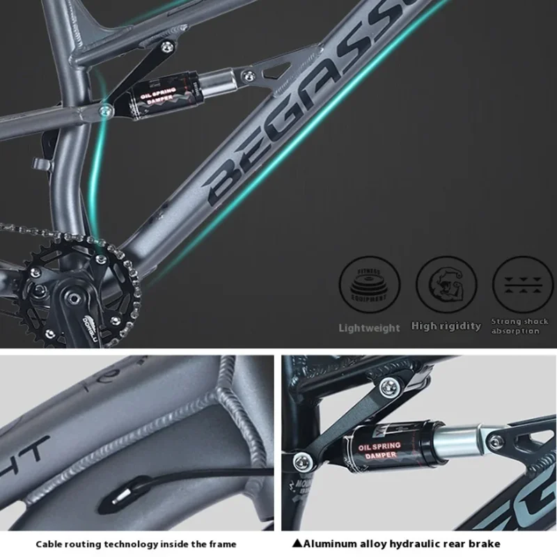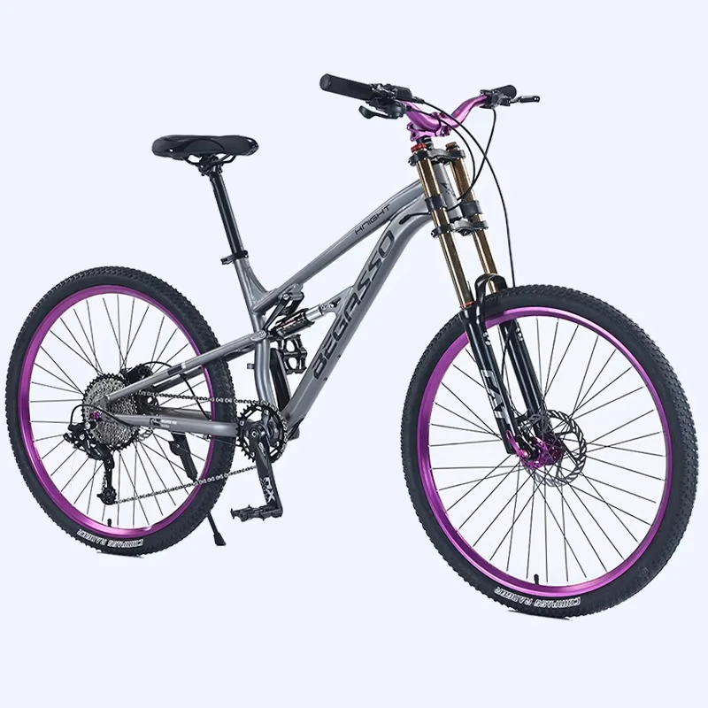 This full suspension mountain bike is designed for cross-country and off-road racing performance, offering a strong balance of control, comfort, and durability. Available in 26-inch and 27.5-inch wheel sizes, it adapts to different riding styles and terrains. The soft tail suspension system absorbs shocks effectively, improving stability on rough trails and downhill sections. Equipped with hydraulic disc brakes and an 11-speed drivetrain, it delivers reliable stopping power and smooth gear shifting for demanding rides. Built for adventure and performance, this bike is ideal for riders seeking capability and confidence on varied terrain.