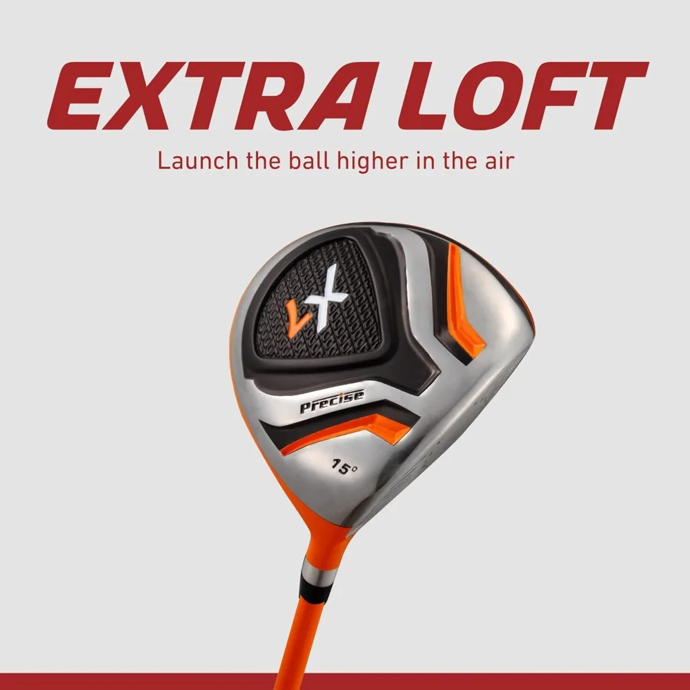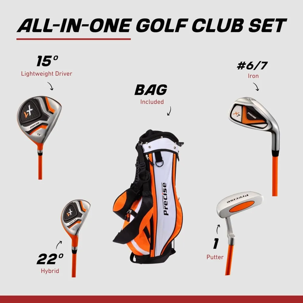 Introduce young golfers to the game with the Precise X7 kids golf club set, designed for both boys and girls. Featuring lightweight graphite shafts, the set includes a hybrid, putter, and stand bag, making it easy for juniors to carry and practice in comfort. Perfect for building swing confidence and developing skills, the durable and ergonomically designed clubs allow children to enjoy learning golf while improving accuracy and control. Ideal for home practice, junior tournaments, or casual play, this set ensures an engaging and fun golfing experience for young players.