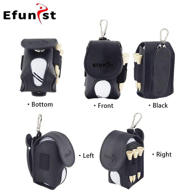 The Efunist Golf Waist Bag features a magnetic closure for quick and easy access to your golf balls during play. Made from durable PU material, it securely holds two golf balls and includes three 54mm tees for added convenience. The portable clip design easily attaches to belts or golf bags, making it a practical and lightweight accessory for golfers who want quick access and organized storage on the course.