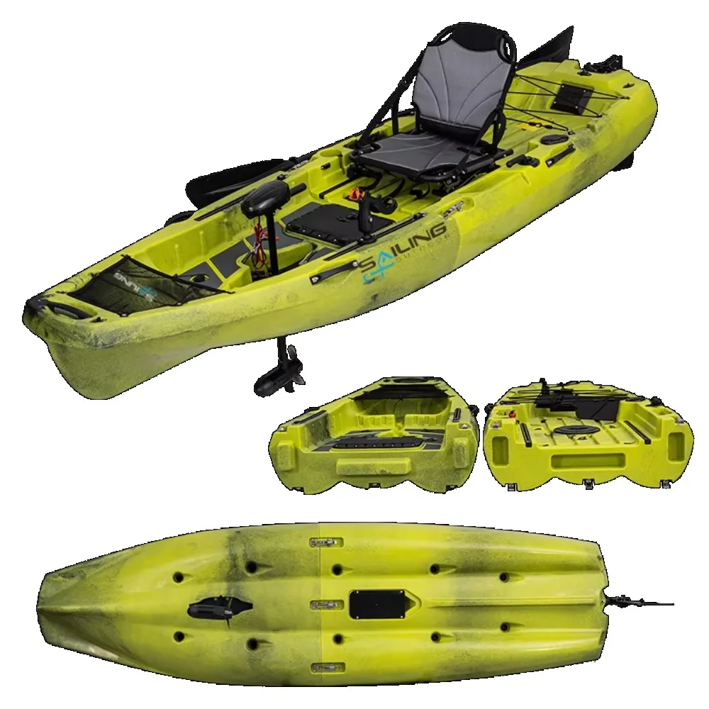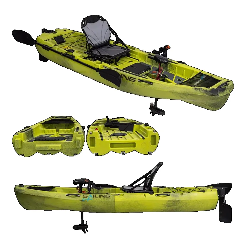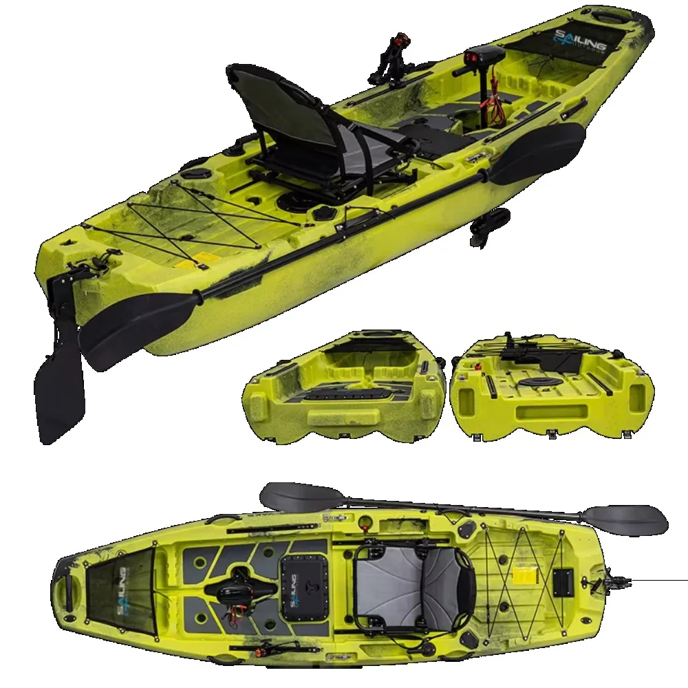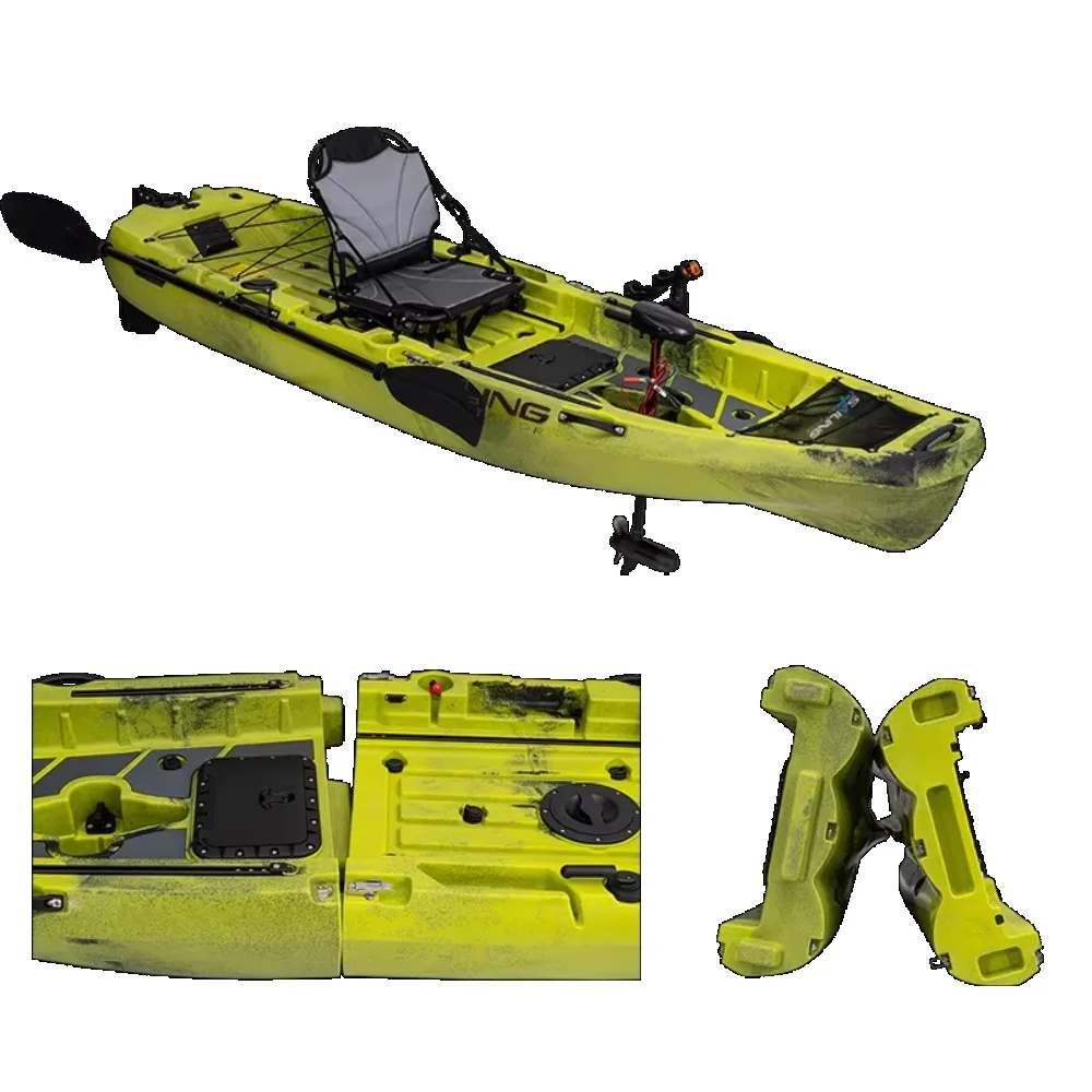 Experience convenience and performance with this modular pedal fishing kayak, designed for easy transport and efficient angling. Built from durable LLDPE material, it offers excellent stability and long-lasting use on lakes and coastal waters. The pedal drive system allows hands-free movement, making it easier to focus on fishing, while the foldable modular design ensures simple storage and portability. Perfect for solo anglers, this kayak combines innovation, durability, and comfort for a superior water experience.