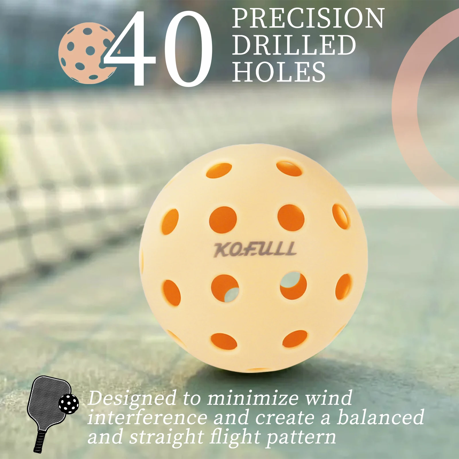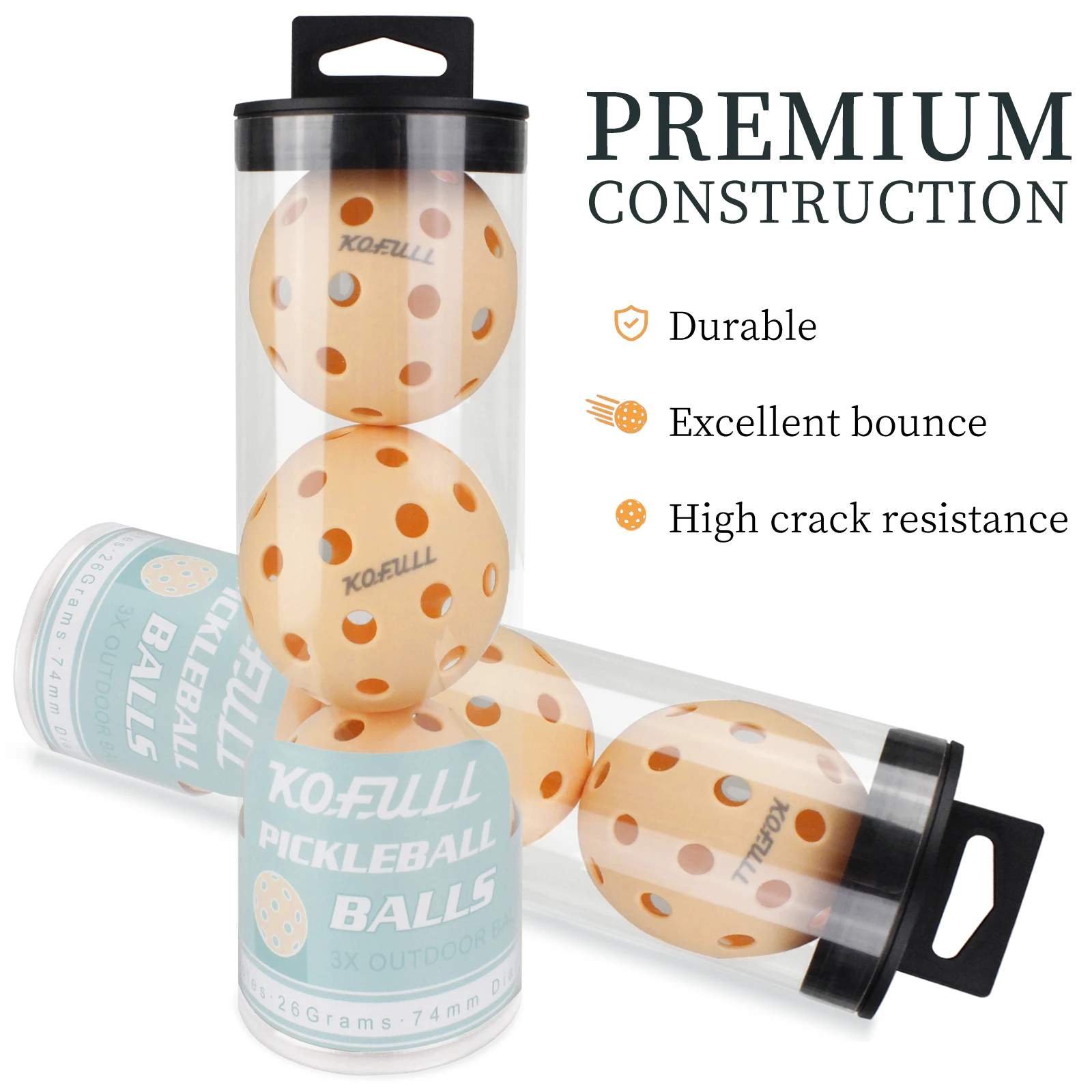 This 3-piece set of 74mm outdoor pickleball balls is designed for durability and high-performance play on all types of outdoor courts. Featuring 40-hole construction, these balls provide consistent flight, excellent bounce, and reliable control for training, practice, and recreational matches. Compatible with all standard pickleball paddles, they are suitable for players of all skill levels. Built to withstand repeated use, these durable pickleballs deliver a fun and reliable playing experience for outdoor games, tournaments, and casual play.