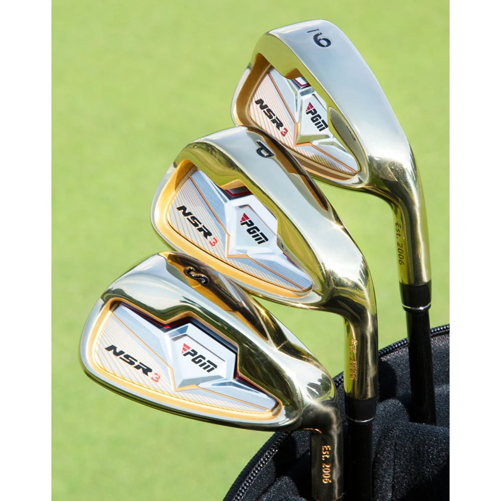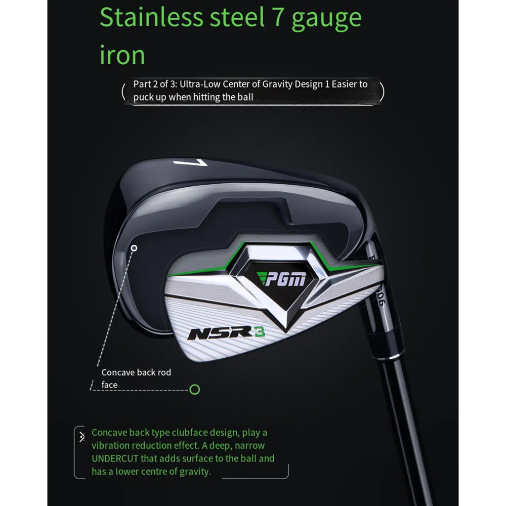 Elevate your practice and performance with the PGM NSR3 Men’s 7-Piece Golf Club Set, featuring stainless steel heads and ultra-light carbon rod shafts for smoother swings and better control. Designed for right-handed players, these clubs include adjustable angles to customize your shot trajectory and improve accuracy. Perfect for professional practice or casual rounds, the set includes versatile irons and woods to cover every aspect of your game. Lightweight, durable, and engineered for performance, this set is ideal for golfers seeking precision, consistency, and comfort on the course.