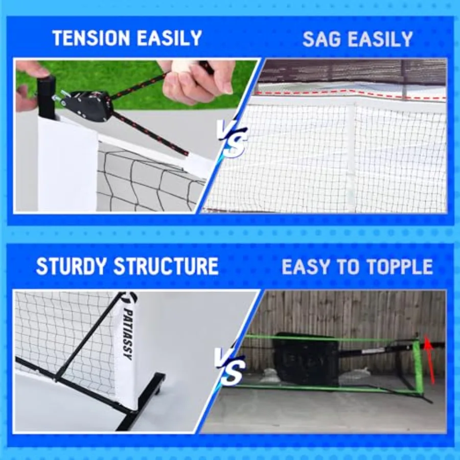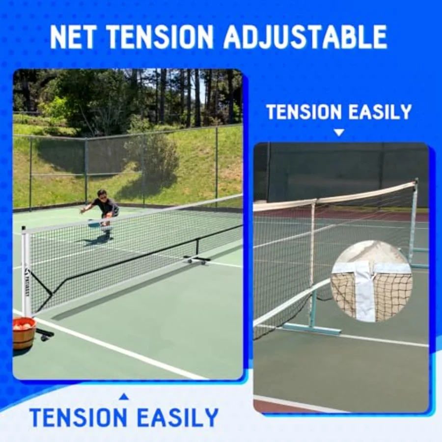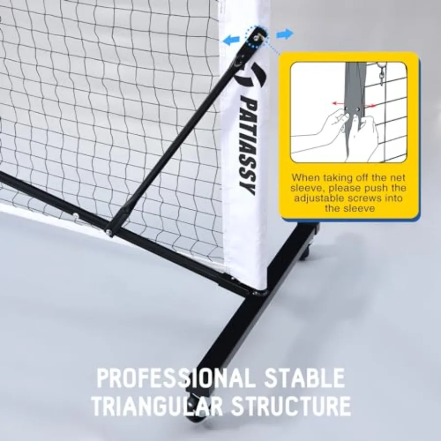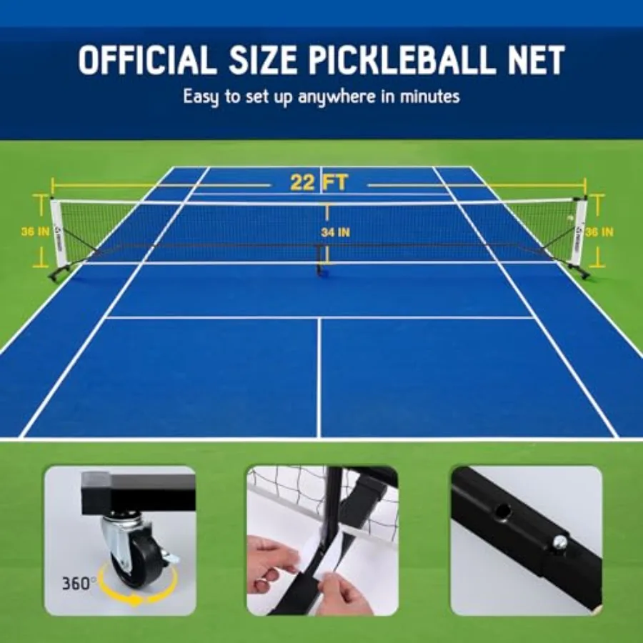 This portable 22-foot pickleball net set is perfect for both indoor and outdoor play, including driveways, backyards, and gym courts. The regulation-size net ensures official gameplay dimensions, while the included court marking kit allows for quick and accurate court setup. Equipped with durable wheels, the net is easy to move, store, and adjust for different locations. Ideal for players of all skill levels, this set provides a convenient and versatile solution for practice, training, or casual matches at home or on the go.