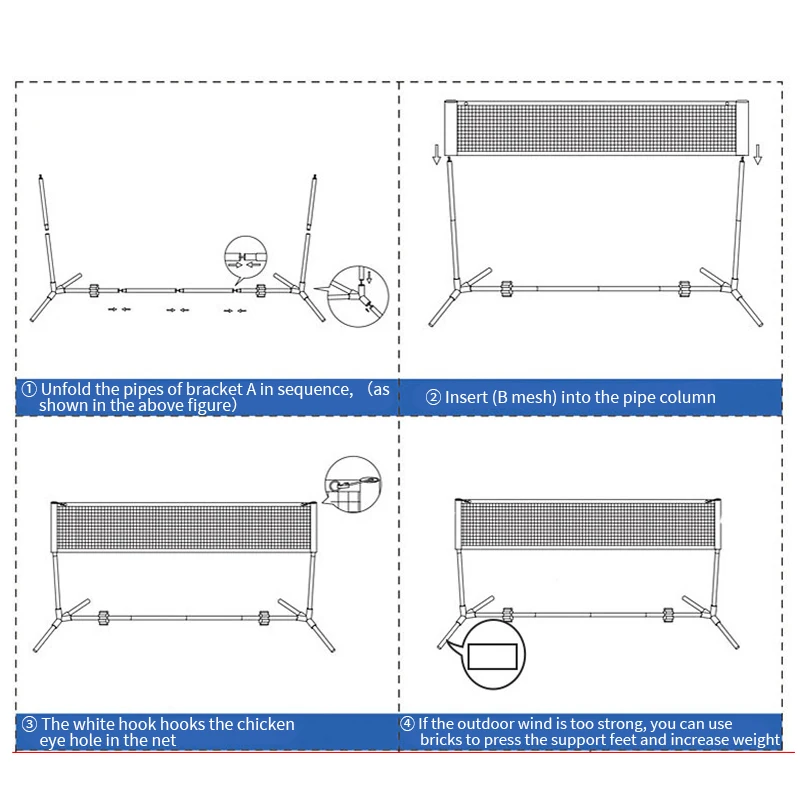 This portable folding badminton net frame is designed for easy setup and convenient outdoor play. Available in multiple lengths from 3.1m to 6.1m, it provides a standard playing width suitable for both singles and doubles matches. The lightweight yet sturdy frame ensures stability during games while remaining easy to transport and store. Ideal for backyard gatherings, parks, and outdoor activities, this simple and practical net system offers quick assembly and reliable performance for home and recreational badminton play.