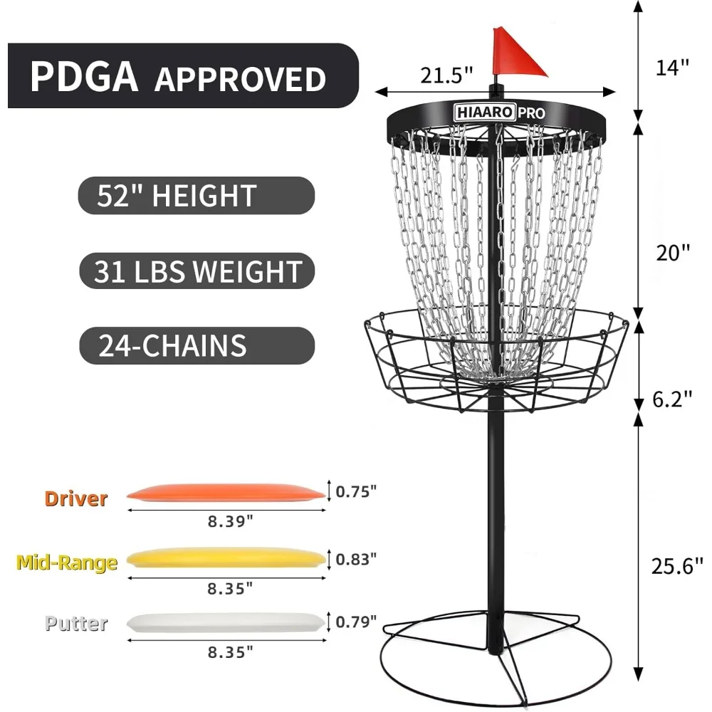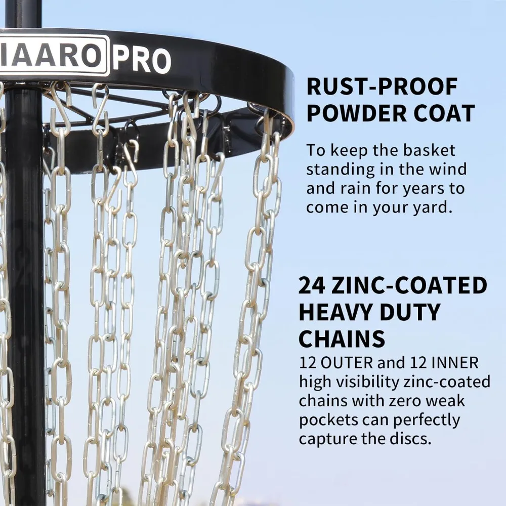 Play and practice like a pro with this portable PDGA pro disc golf basket, designed for tournament-level performance and durability. Featuring a heavy-duty 24-chain system, it ensures reliable disc capture and consistent accuracy for competitive play. The sturdy construction is built for outdoor use, while the portable design makes it easy to set up and move for practice anywhere. Perfect for players of all levels, this professional disc golf target is ideal for improving skills and enjoying the game anytime.