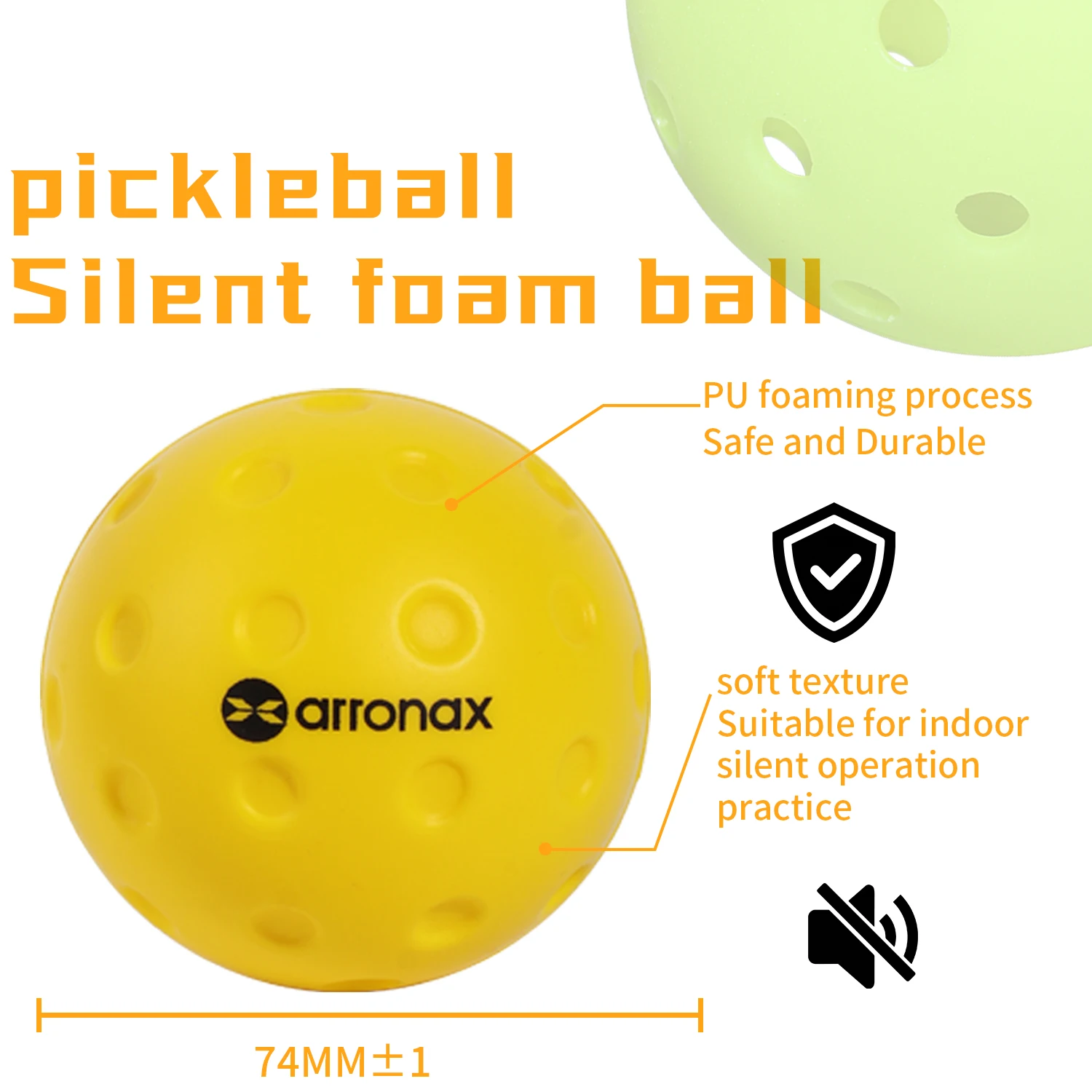 These Arronax silent indoor pickleball balls are designed for quiet practice and recreational play without disturbing others. Made from durable PU foam, they offer high bounce and consistent performance while maintaining a soft, safe design suitable for indoor spaces. Ideal for training, casual games, or entertainment, this 4-piece set allows players to practice shots, rallies, and drills with minimal noise. Perfect for home use, classrooms, or indoor gyms, these balls combine safety, durability, and fun for players of all ages.