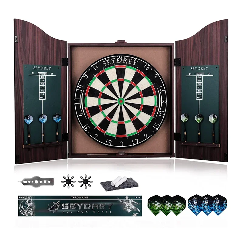 Upgrade your game room with this high-quality sisal dartboard cabinet set, complete with six darts for immediate play. The durable sisal surface offers excellent self-healing properties for long-lasting performance, while the cabinet keeps your setup organized and protected when not in use. Ideal for home entertainment or casual competition, it provides a professional-style playing experience. Perfect for players of all levels, this set combines convenience, durability, and classic design for enjoyable gameplay.