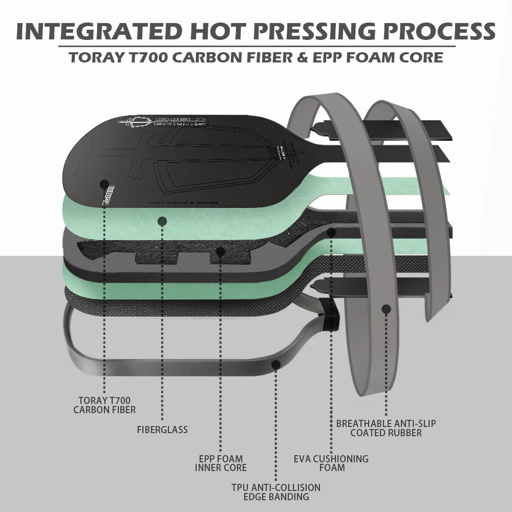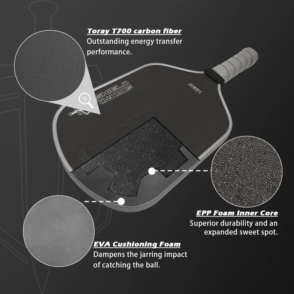 Dominate the court with this T700 carbon fiber pickleball paddle, built for durability, power, and precision. Featuring a thermoformed integrated design with a high-performance foam core, it delivers excellent impact resistance and a consistent, responsive feel on every shot. The carbon fiber surface enhances spin and control, giving players greater accuracy and confidence during play. Perfect for both competitive and recreational use, this paddle offers a balanced combination of strength, comfort, and performance.