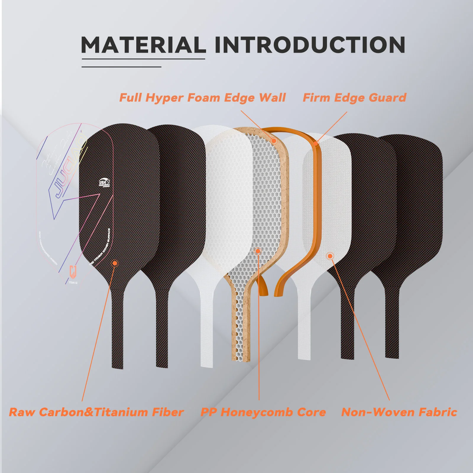 Upgrade your game with this titanium carbon pickleball paddle, designed for exceptional spin, control, and durability. Featuring a carbon fiber surface and thermoformed construction, it delivers enhanced responsiveness and consistent performance on every shot. The foam-injected edges provide added stability and a larger sweet spot, improving accuracy and power. Ideal for both competitive and recreational players, this paddle offers a perfect blend of precision, comfort, and long-lasting performance.